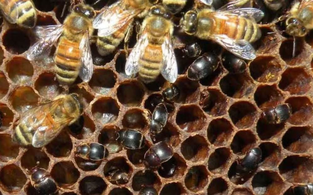 Ele ataca as colmeias de abelhas, danifica os favos e compromete todo o mel. Este é o Pequeno Besouro das Colmeias (Aethina tumida), praga originária da África subsaariana e que chegou aos Estados Unidos e México antes de adentrar o Brasil, em 2016, no estado de São Paulo.