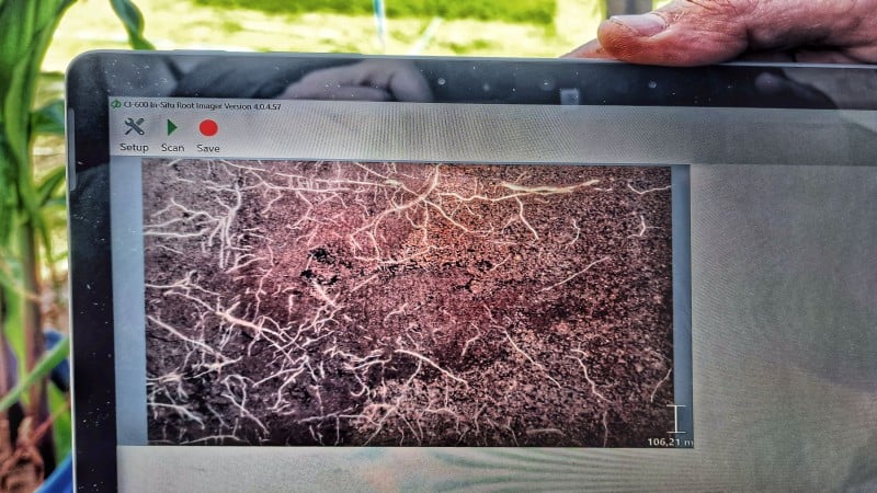 Com pouco mais de um metro de comprimento, o instrumento assume a forma de um tubo que penetra o solo, capturando imagens digitais de alta resolução das raízes das plantas.