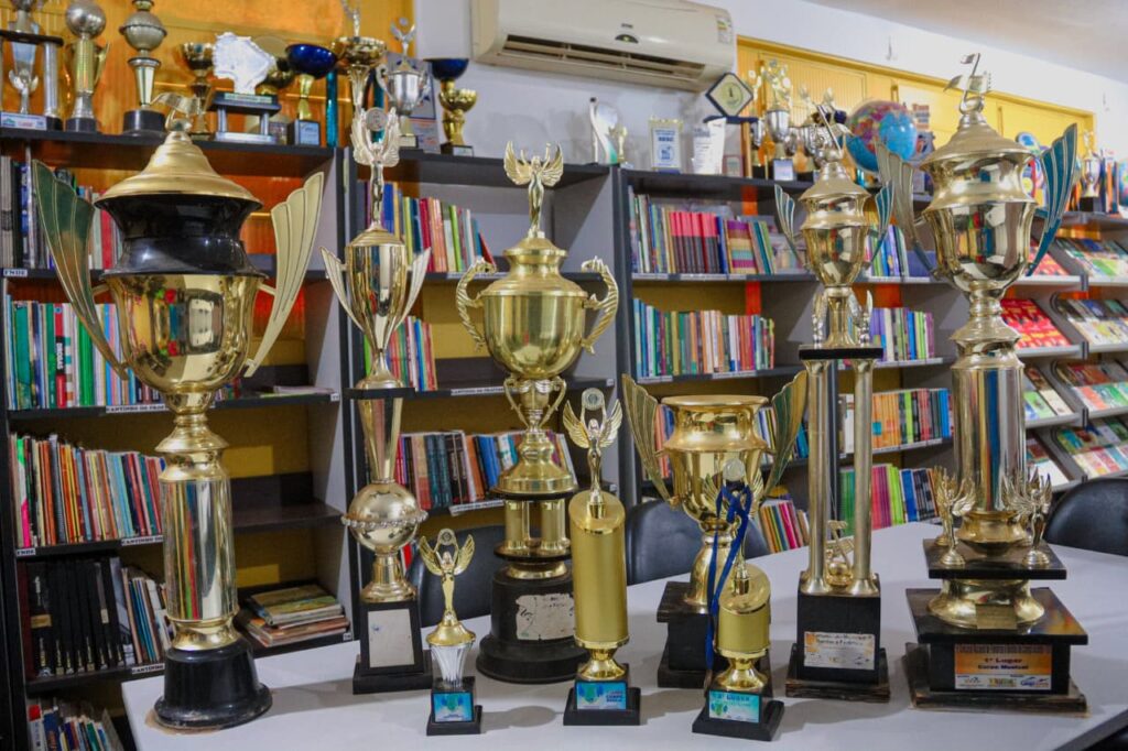 A Escola Municipal Dr. Eduardo Olímpio Machado carrega tradição nos concursos de Bandas e Fanfarras. Suas estantes de honra exibem os troféus conquistados, frutos da dedicação de alunos e professores que transformam ensaios em espetáculos.