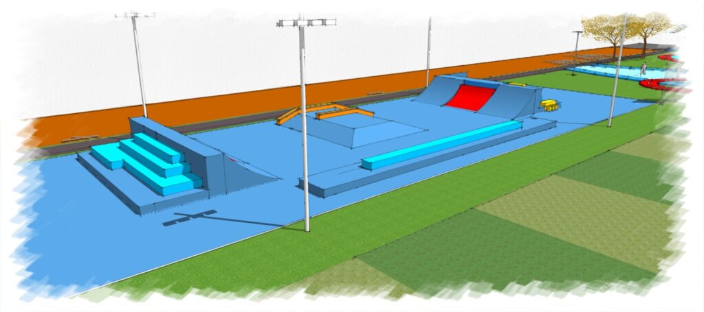O projeto contempla a construção de duas quadras cobertas, pista de skate, academia ao ar livre, pista de caminhada, espaço recreativo, parquinho infantil com piso emborrachado e um novo campo de futebol a poucas quadras da área principal.