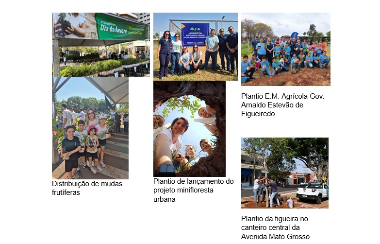 A programação também incluiu a distribuição de 15 mil mudas frutíferas ao público, o lançamento do projeto Miniflorestas Urbanas, plantios comunitários em praças, escolas e no canteiro central da Avenida Mato Grosso.