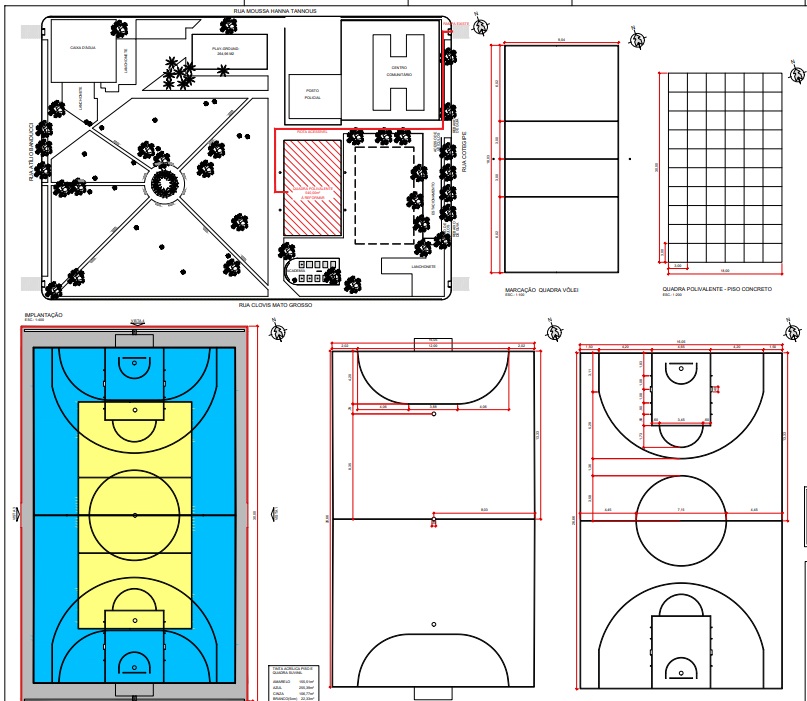 - Reforma completa do piso, incluindo pintura e demarcação esportiva com tinta acrílica;