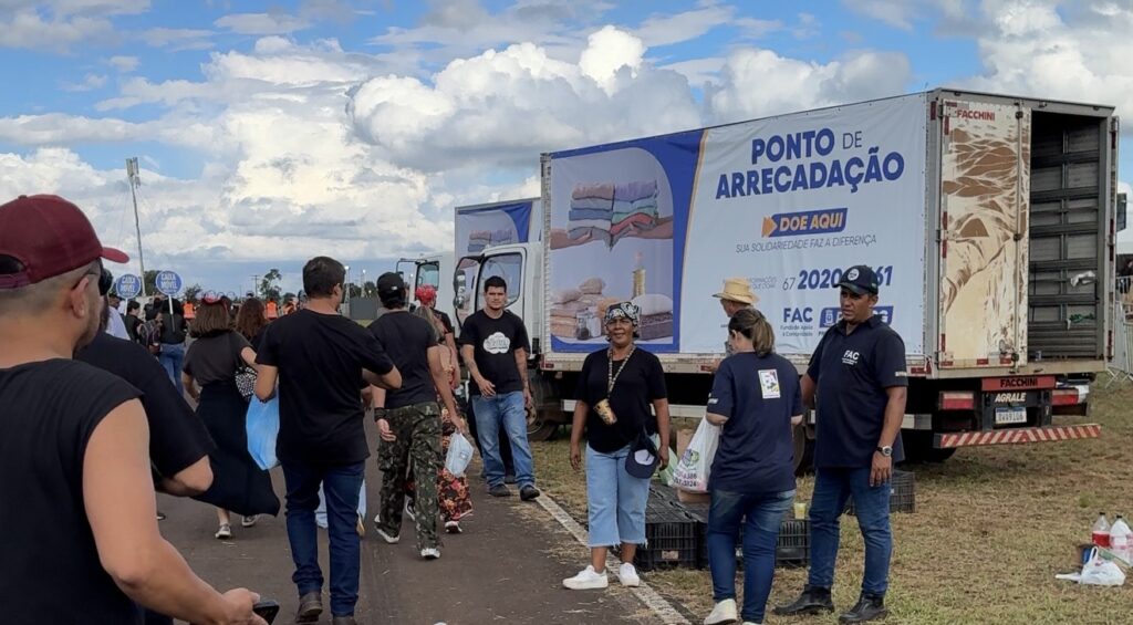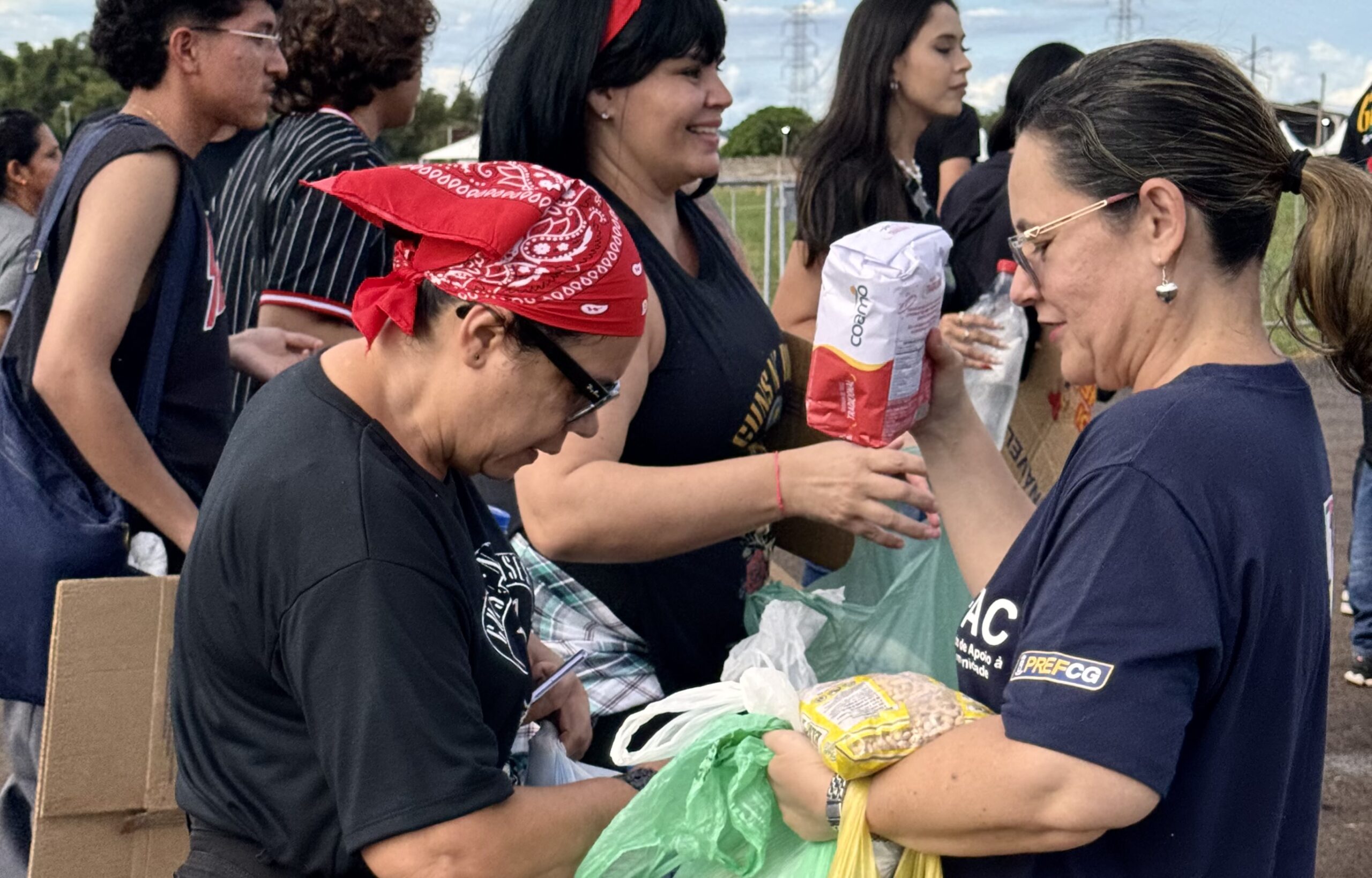 Entre os itens arrecadados estão alimentos básicos como arroz, feijão, açúcar e farinha, que já estão sendo organizados para distribuição pelos programas do FAC.