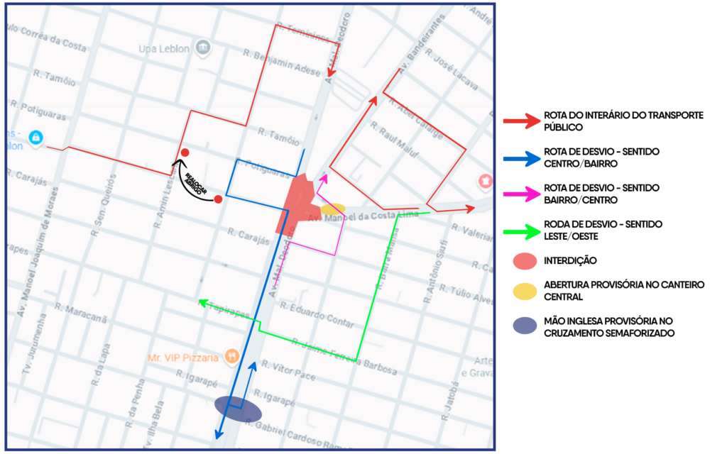 - Alteração temporária no itinerário de ônibus e ponto de parada.