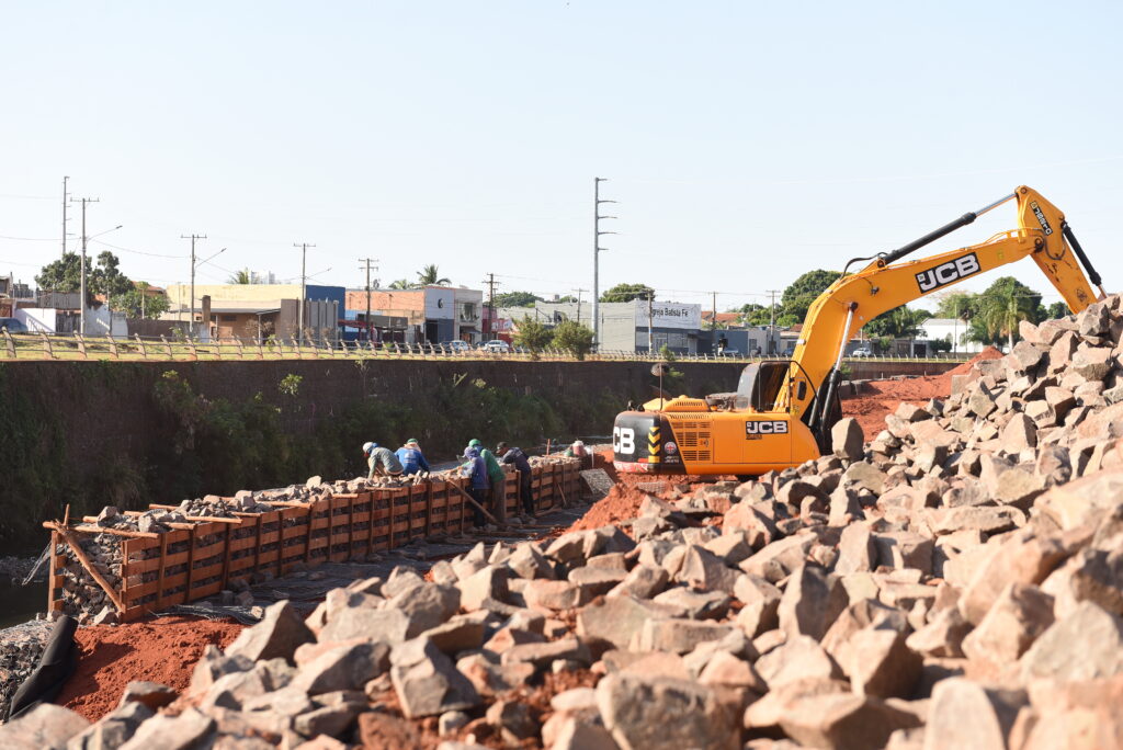 Outro grande empreendimento da gestão municipal é a obra de contenção de enchentes e erosão no córrego Anhanduí, na Avenida Ernesto Geisel. Estão sendo investidos mais de R$ 20,9 milhões na canalização pelo sistema gabião, recapeamento e colocação de guarda-corpo no trecho entre as ruas da Abolição e Bonsucesso. E o Executivo Municipal está em busca de recursos para executar a próxima etapa da canalização do córrego, no trecho a partir da Rua Bonsucesso.