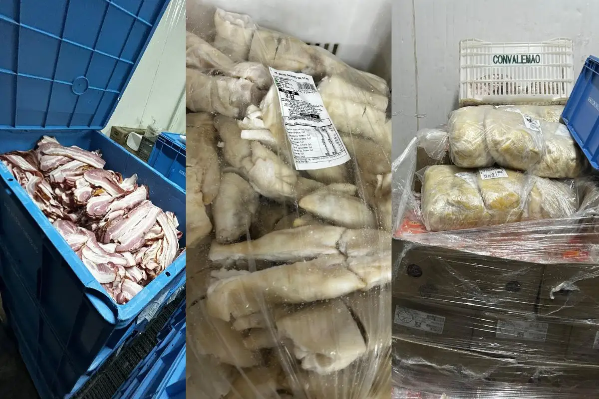 No local, os fiscais identificaram diversas irregularidades, como o fracionamento de alimentos sem autorização sanitária. Segundo a Polícia Civil, produtos como muçarela e presunto eram fatiados e redistribuídos para pontos de venda. Também foram encontrados itens vencidos e em estado de deterioração, incluindo peças com sinais de contaminação bacteriana, além de mercadorias sem qualquer identificação de validade.