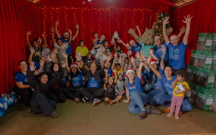 O último sábado foi de sorrisos, emoção e muitos abraços na Vila Nasser. Em mais uma ação do Programa de Voluntariado da Águas Guariroba, colaboradores da concessionária se mobilizaram para adotar cartinhas e realizar a entrega de presentes de Natal para cerca de 120 crianças da comunidade, além de cestas para famílias atendidas na região.