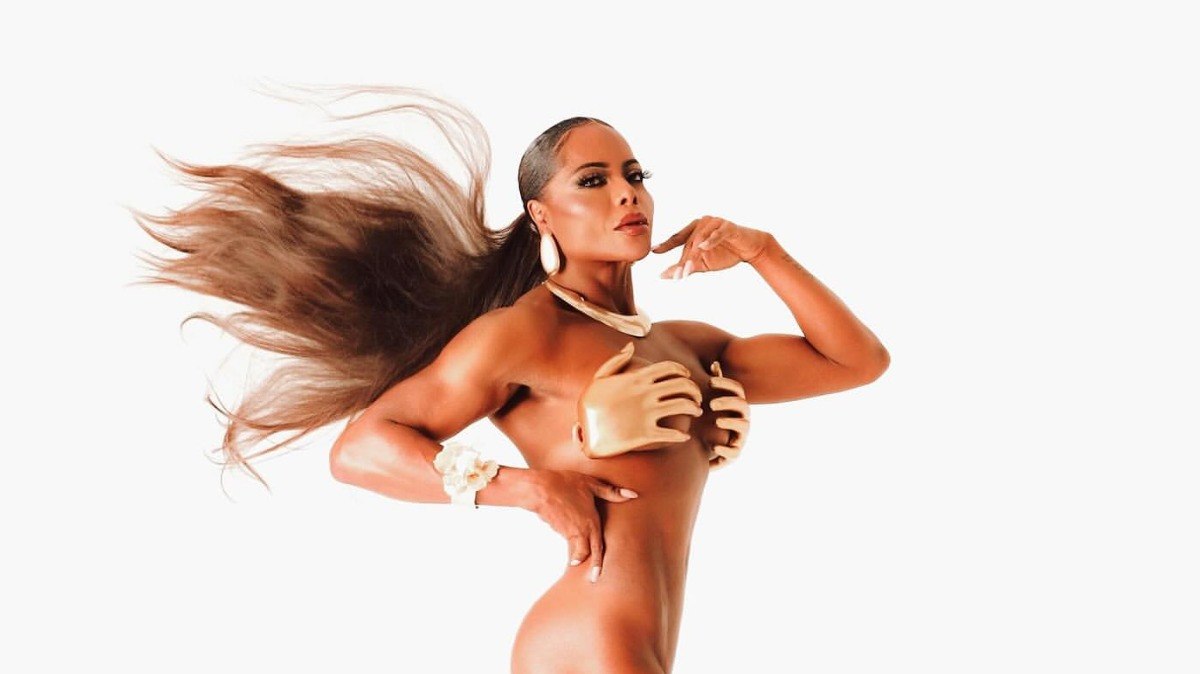 Na publicação feita no feed do Instagram, a artista surgiu com um sutiã em forma de mãos em uma cor perolada bege, que combinava com os acessórios que usava. A parte de baixo do conjunto não ficava à mostra devido às poses escolhida por Bombom.