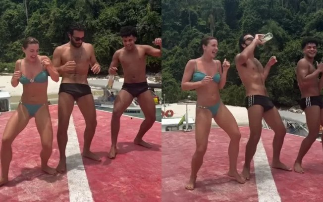 Alice Wegmann agitou as redes sociais nesta segunda-feira (27) ao compartilhar um vídeo descontraído ao lado de Humberto Carrão e Lucas Leto, colegas de elenco na nova versão da novela Vale Tudo. O trio aproveitou a folga das gravações com muito gingado e momentos de diversão em Angra dos Reis, no Rio de Janeiro.