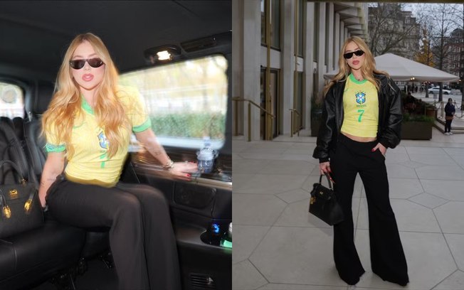 A apresentadora vestia a camisa amarela da Seleção com o número sete, o mesmo utilizado por Vini em campo. O que também chamou atenção foi a bolsa escolhida pela influenciadora. Segundo o e-commerce, o item de luxo da marca Hermès é avaliado em R$ 132 mil.