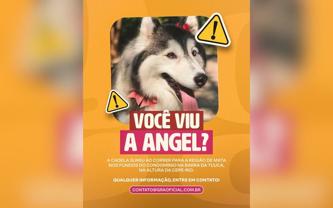 A cachorrinha Angel, da raça husky siberiano, companheira de longa data da influenciadora e musa fitness Gracyanne Barbosa, está desaparecida desde o final de janeiro. O animal fugiu para uma área de mata nos fundos do condomínio onde Gracyanne mora, na Barra da Tijuca, Rio de Janeiro.