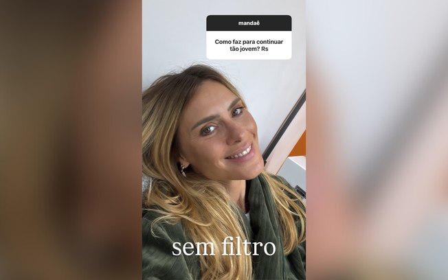 Em tom descontraído, ela ainda comentou sobre os efeitos do tempo: “Me sinto jovem por dentro, mas por fora o colágeno já está a uns 30 km de mim. Mas não tem problema não, o negócio é [ter] o espírito jovem e o filtro do Instagram”.