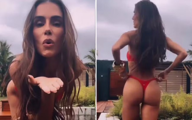 A atriz Deborah Secco, de 44 anos, publicou uma foto de biquíni neste sábado (14), desafiando o clima frio do outono no Rio de Janeiro. A atriz apareceu com uma peça vermelha em momento de lazer e chamou atenção pela boa forma e pela escolha do look ousado.