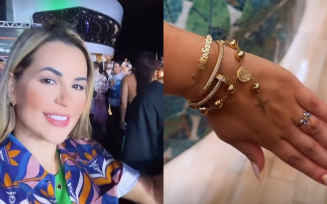 Deolane Bezerra encontrou uma joia que havia perdido durante o cruzeiro de Neymar, que começou nesta terça-feira (26). Antes de curtir as festas do evento, a influenciadora apareceu nas redes sociais para agradecer o funcionário do navio que recuperou a pulseira, avaliada em mais de R$ 300 mil.