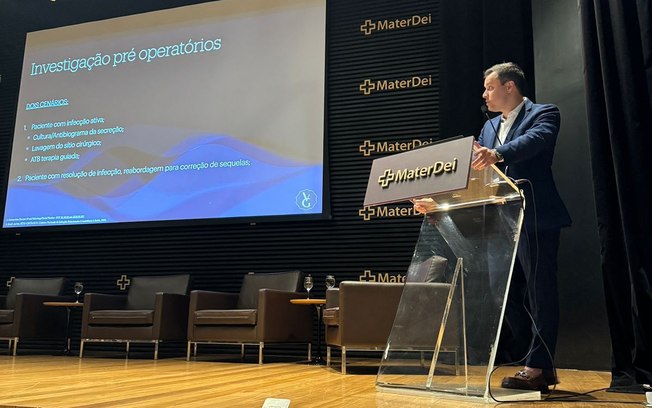 Dr. Victor ministrou sua palestra na última sexta-feira (17) sobre cirurgias revisionais pós-infecção, um assunto crucial depois de procedimentos cirúrgicos. Após a pandemia, houve um grande aumento de infecções pós-operatórias com mudanças imunológicas devido ao COVID.