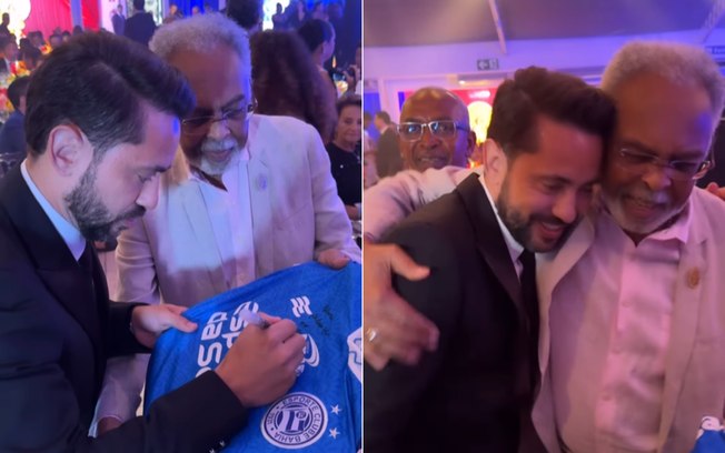 Após a dedicatória, os dois trocaram abraços e palavras de admiração. “É um prazer, viu? ‘Prazerzão’ te conhecer”, disse o camisa 10 do Bahia. Gilberto Gil retribuiu o carinho: “Obrigado, querido. Boa sorte aqui, que você seja feliz.”