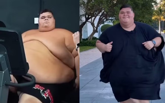 Após eliminar 75 kg com alimentação balanceada e treinos intensos, ele celebrou a própria evolução ao comparar um vídeo antigo em que mal conseguia pedalar por um minuto com o atual, em que já é capaz de correr por uma hora.