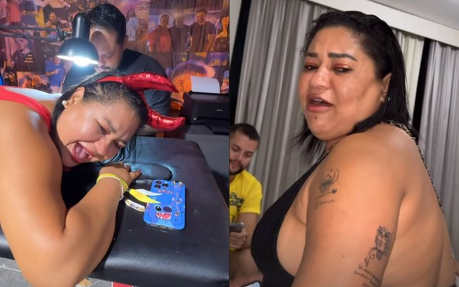 A influenciadora Leide Diana fez uma tatuagem na Farofa da Gkay e só percebeu um erro após deixar o espaço, na madrugada desta quarta-feira (6). O influenciador Alvaro e outros amigos da convidada apontaram que uma letra ficou de fora da frase marcada no braço.