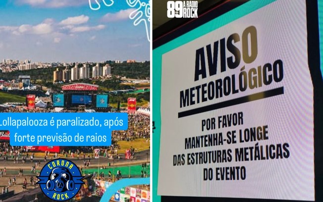 Os shows do Lollapalooza Brasil foram temporariamente suspensos na tarde desta sexta-feira (28) devido ao risco de raios no Autódromo de Interlagos, em São Paulo. Telões espalhados pelo evento emitiram alertas para que o público evitasse estruturas metálicas e procurasse áreas seguras.