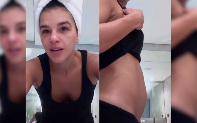 Em um vídeo publicado no Instagram, ela mostrou sua silhueta alterada pelos efeitos do tratamento hormonal e comparou o inchaço abdominal a uma “barriga de grávida”.