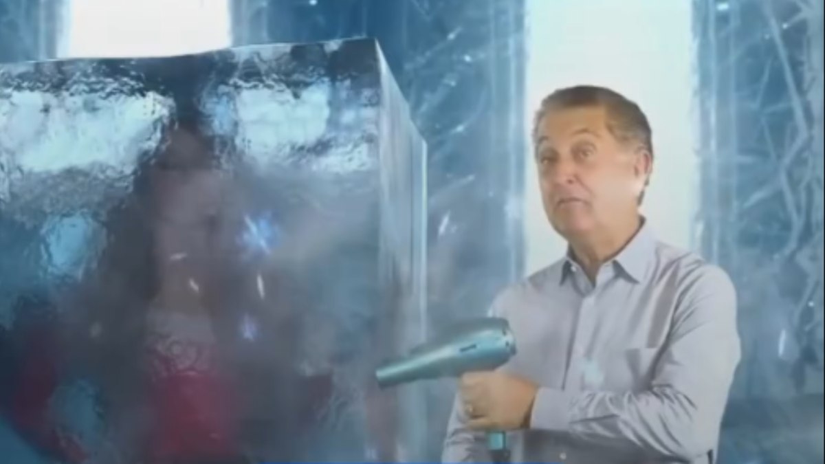 A gravação, divulgada nas redes sociais, mostra o prefeito descongelando um grande bloco de gelo com um secador de cabelo, em referência direta ao vídeo da cantora estadunidense, que anuncia o início das festas com a frase “ It’s Time ”.