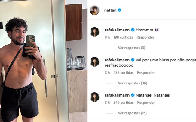 “Vai por uma blusa para não pegar um resfriado.” Em outro comentário, reforçou o tom de repreensão com: “Natanael, Natanael…” e um enigmático “Hm” acompanhado de um emoji de olhos atentos.