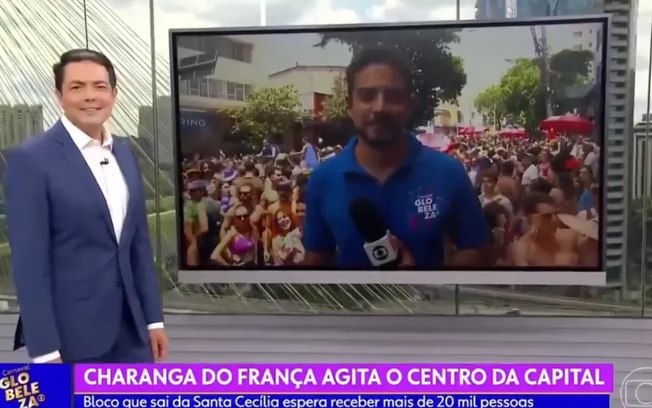Sem perder a compostura, o jornalista seguiu com a transmissão e tentou ignorar os gritos. “Alan, parece que está todo mundo aqui, parece que São Paulo inteira está aqui. Estamos no final da Alameda Martim Francisco, teve muito sol, e é aquele negócio: qualquer um se destaca, bota uma fantasia diferente, chama a atenção por aqui”, disse ele, visivelmente sem graça.