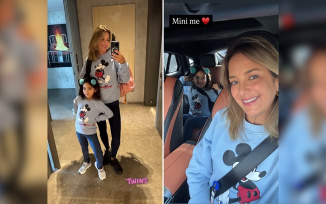 Com bom humor, ela se referiu à pequena como sua “mini eu” e usou um sticker com a palavra “gêmeas” para reforçar a semelhança entre as duas.