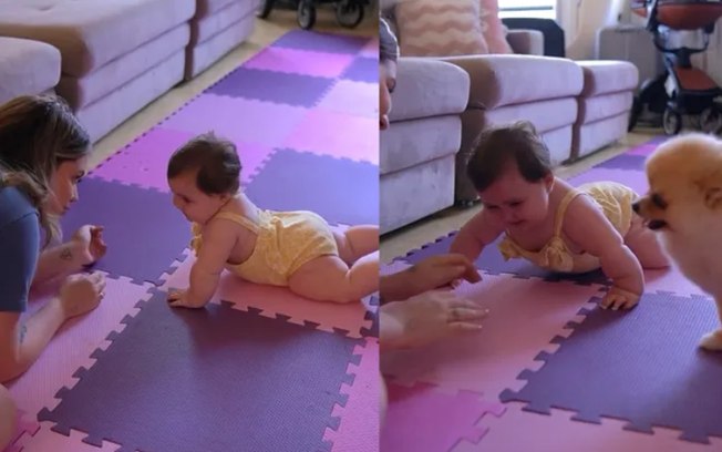 Nesta quarta-feira (15), Viih Tube e Eliezer compartilharam mais uma etapa do cresimento da filha de sete meses, Lua. Elespostaram vídeos da bebê engatinhando pela primeira vez.