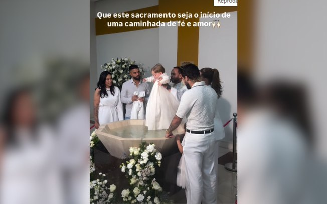 A influenciadora Virginia Fonseca e o cantor Zé Felipe batizaram, nesta terça-feira (9), o filho caçula, José Leonardo, em Goiânia. A cerimônia antecedeu a festa de 1 ano do menino e reuniu familiares.