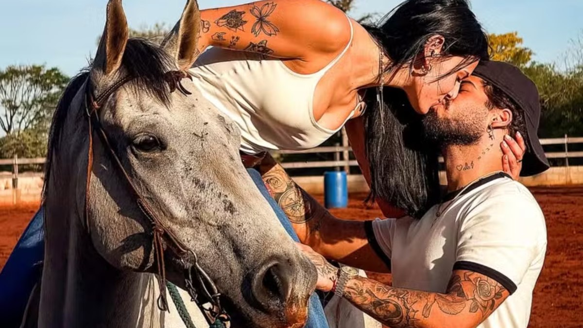 Por meio do Instagram, plataforma de interação virtual na qual soma mais de 33 milhões de seguidores, o filho de Leonardo publicou uma foto beijando a “boiadeira”, que estava em cima de um cavalo no momento do clique.