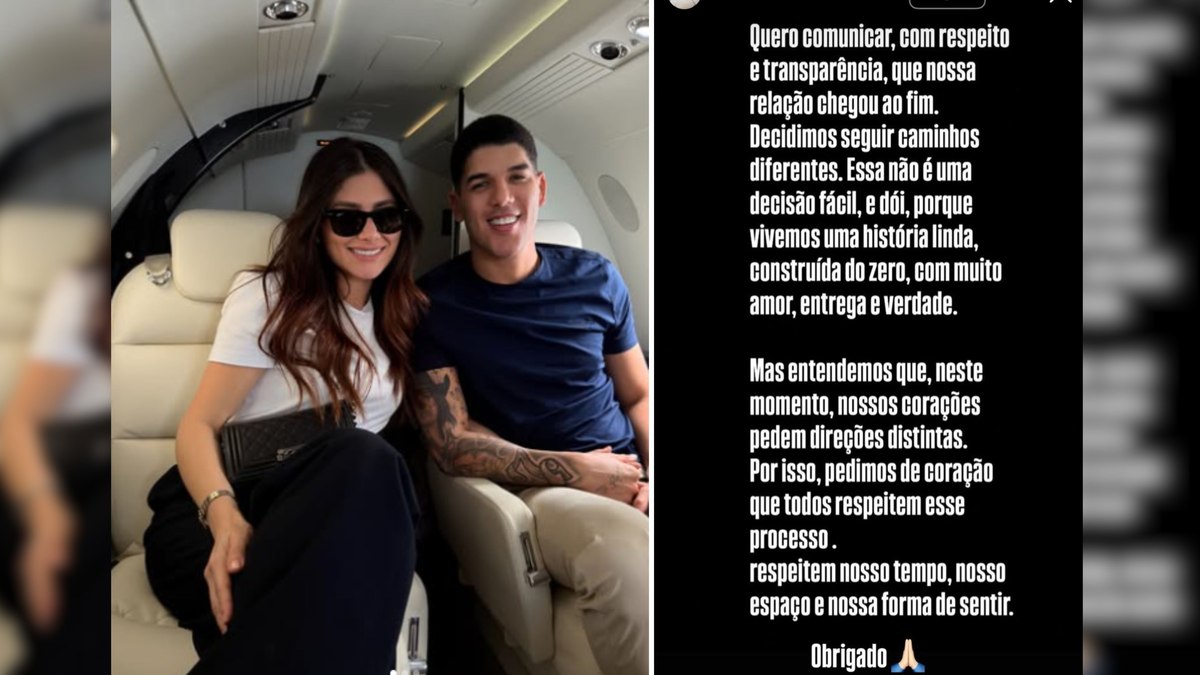 “Quero comunicar, com respeito e transparência, que nossa relação chegou ao fim. Decidimos seguir caminhos diferentes. Essa não é uma decisão fácil, e dói, porque vivemos uma história linda, construída do zero, com muito amor, entrega e verdade”, afirmou.