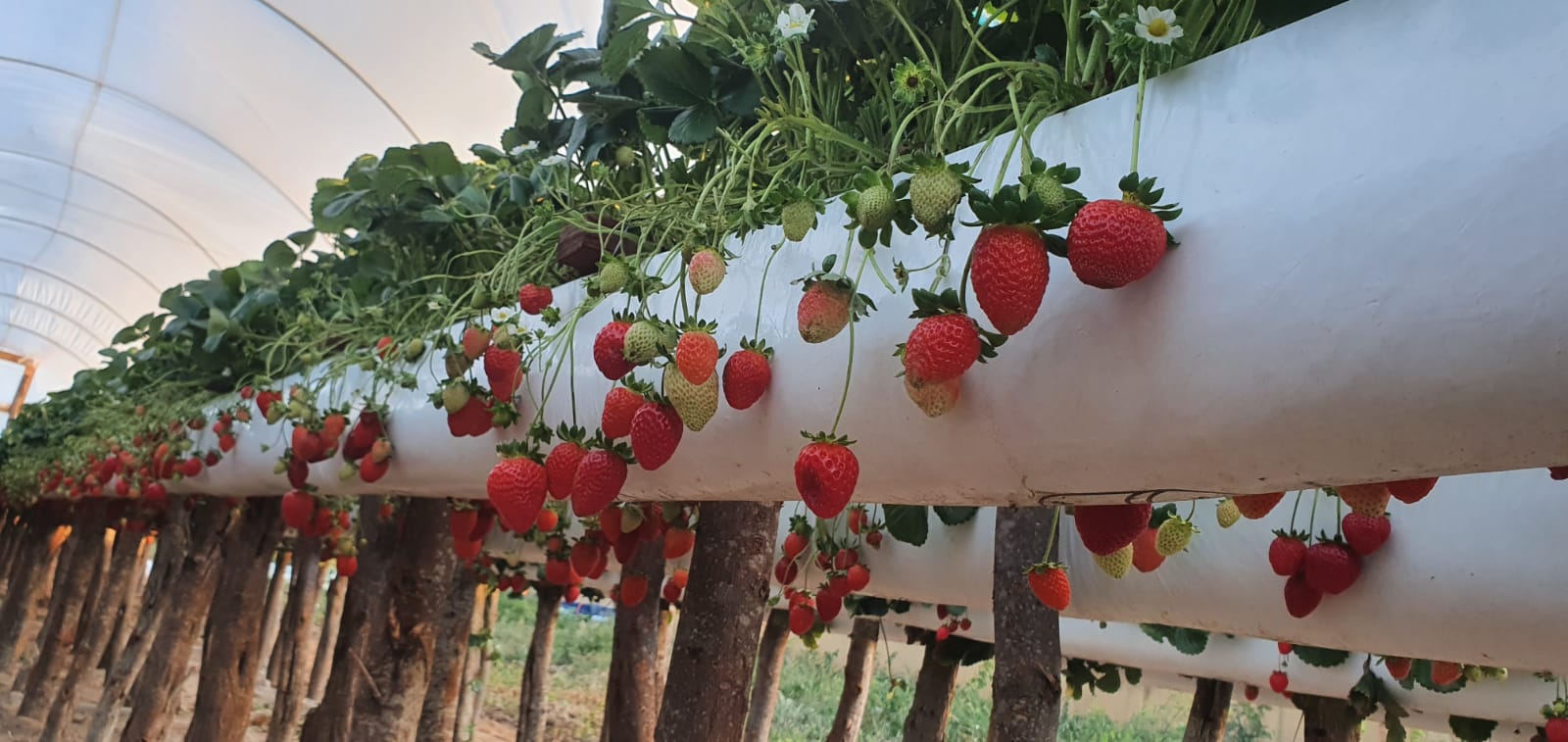 Para driblar as adversidades da adaptação do cultivo ao território — já que o morango é mais propício a regiões frias —, os produtores adotaram o sistema semi-hidropônico, no qual as plantas são cultivadas sem o uso da terra tradicional, apoiadas em um material neutro e irrigadas com água e nutrientes na medida certa.