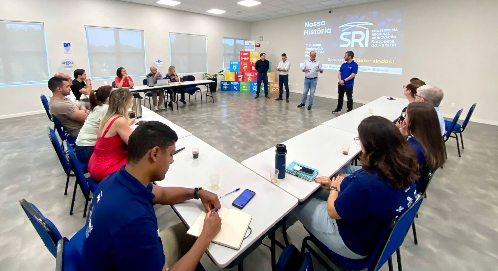 O Sistema Regional de Inovação do Sudoeste do Paraná (SRI) recebeu na quarta-feira, 14, e na quinta-feira, 15, uma comitiva formada por representantes ligados ao SRI Sul de Minas Gerais. A visita da equipe teve como intuito conhecer as estratégias e a governança dos ecossistemas locais, planejamento, atuação junto com outros atores, como o setor público, privado e instituições de ensino, bem como os programas desenvolvidos regionalmente no sudoeste do Paraná.