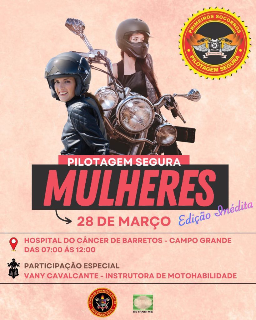 Campo Grande (MS) – Em alusão ao Mês da Mulher, o Corpo de Bombeiros Militar de Mato Grosso do Sul (CBMMS), por meio da equipe de motossocorro, realizará no dia 28 de março uma edição especial do Projeto Pilotagem Segura, voltada exclusivamente ao público feminino.
