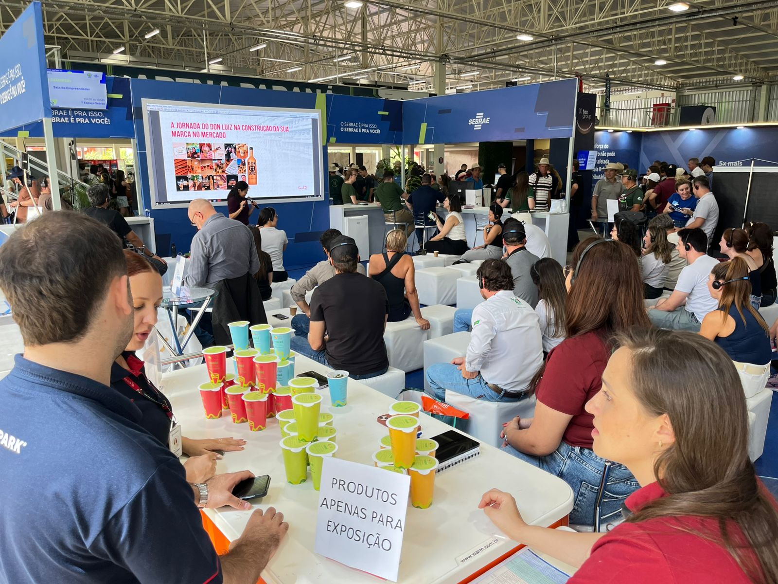 Ao longo do dia acontecem pitches e palestras para os visitantes do Espaço Sebrae.