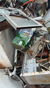 No local os policiais e a Perícia encontram restos de caixas d` água de amianto, lã de vidro, baterias de computadores de lítio, tanques vazios de gás refrigerante de uso hospitalar, além de um chiqueiro de porcos, galinhas, patos, um bar clandestino.