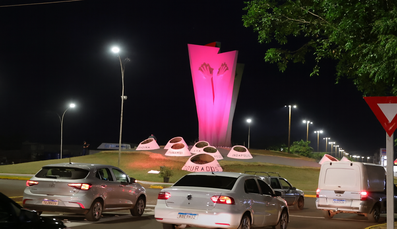 Recém revitalizado, Monumento ao Colono em Dourados exibe tom na cor da Campanha Outubro Rosa comissão – Foto: A. Frota