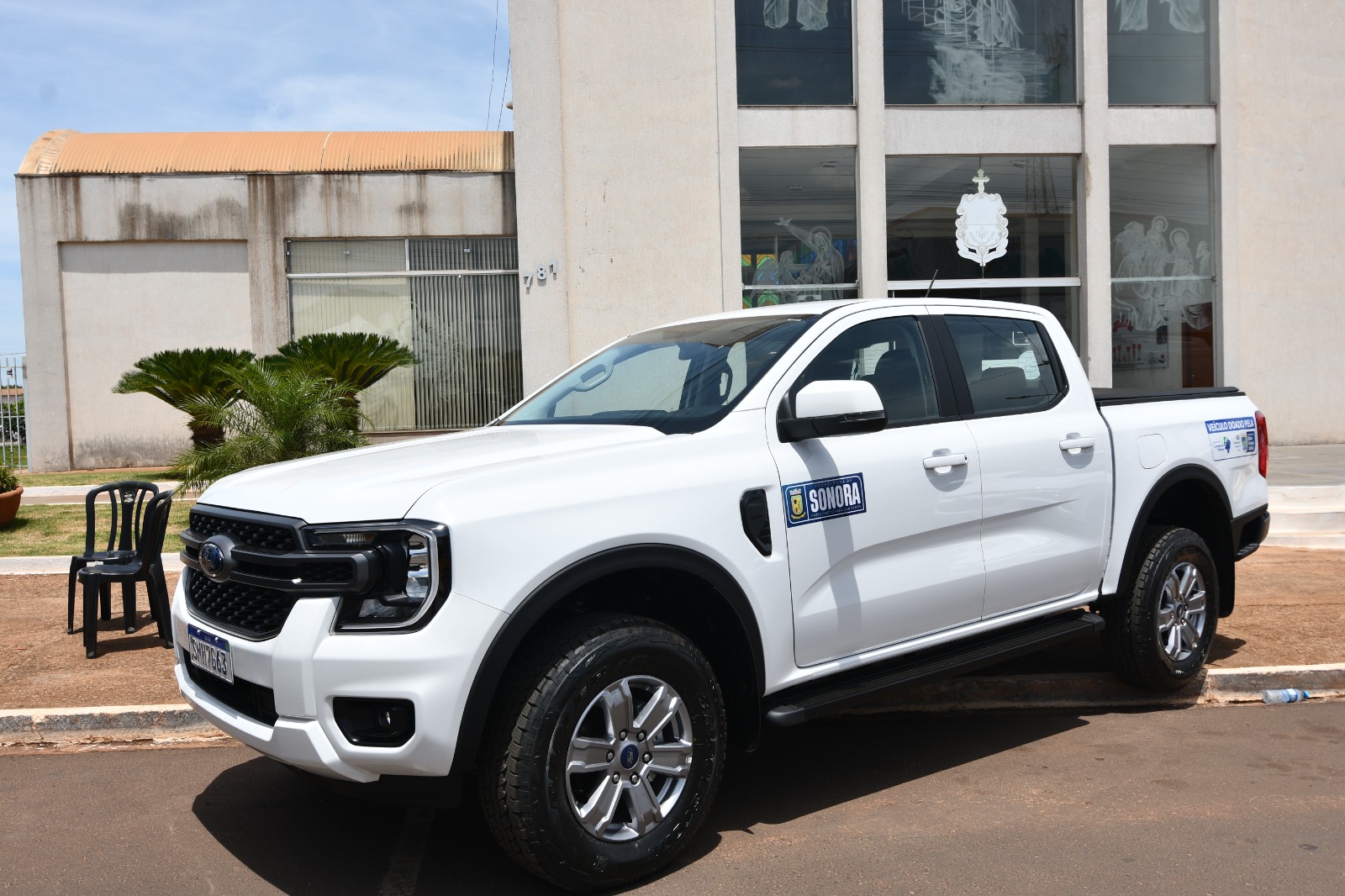 Caminhonete Ford Ranger – adquirida com recursos próprios da Prefeitura de Sonora, também destinada à Gerência de Obras, com entrega feita pela gerente de Finanças, Silmara Oliveira.