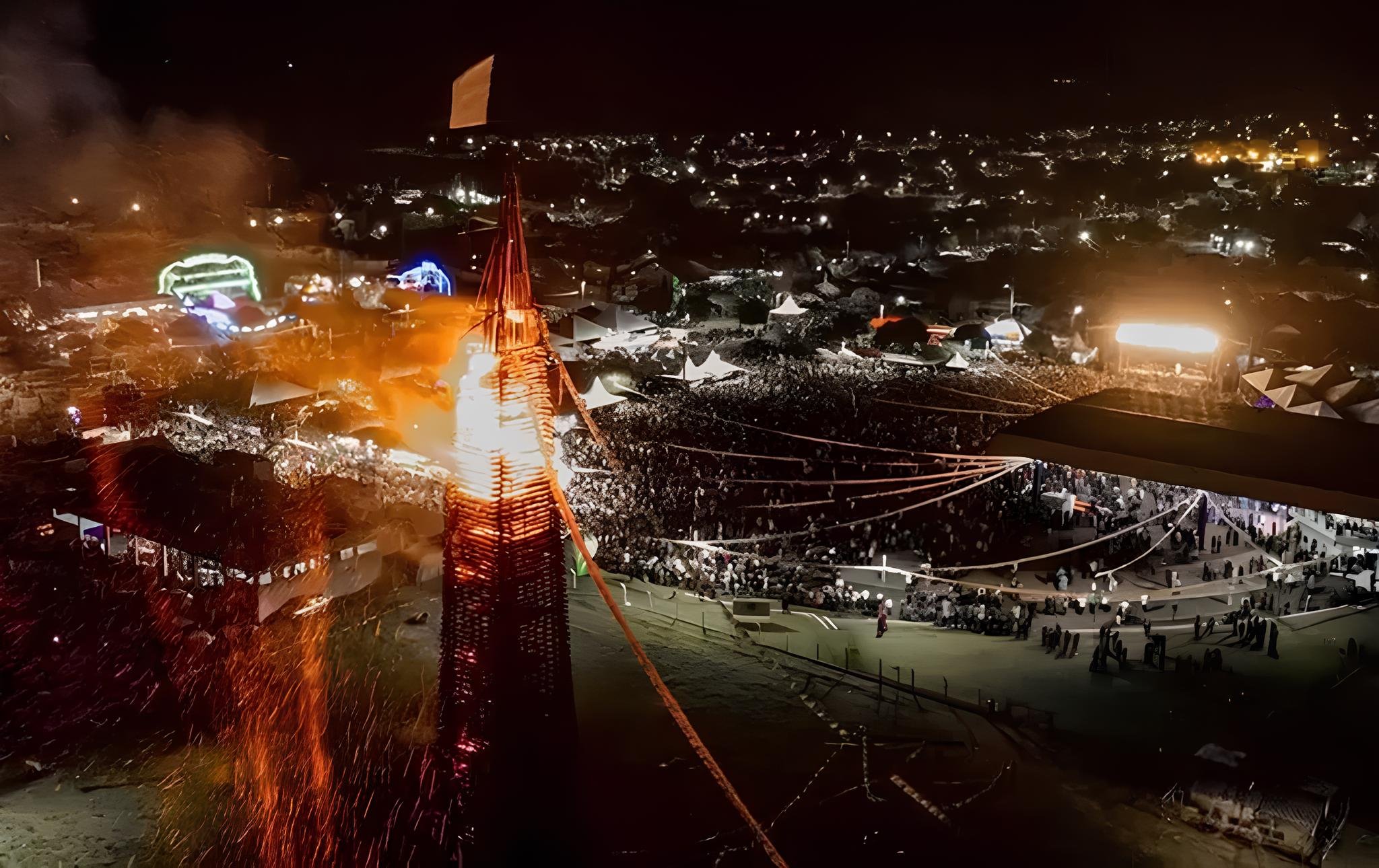Realizada desde 1977, a festa surgiu por iniciativa do professor Manoel Sanches Gabriel, que ergueu uma fogueira de seis metros para homenagear São Pedro, padroeiro do município. Ao longo das décadas, cresceu e passou a alcançar alturas superiores a 60 metros, com estrutura formada por centenas de troncos de eucalipto e montagem que envolve guindastes, cabos de aço e elevadores hidráulicos.
