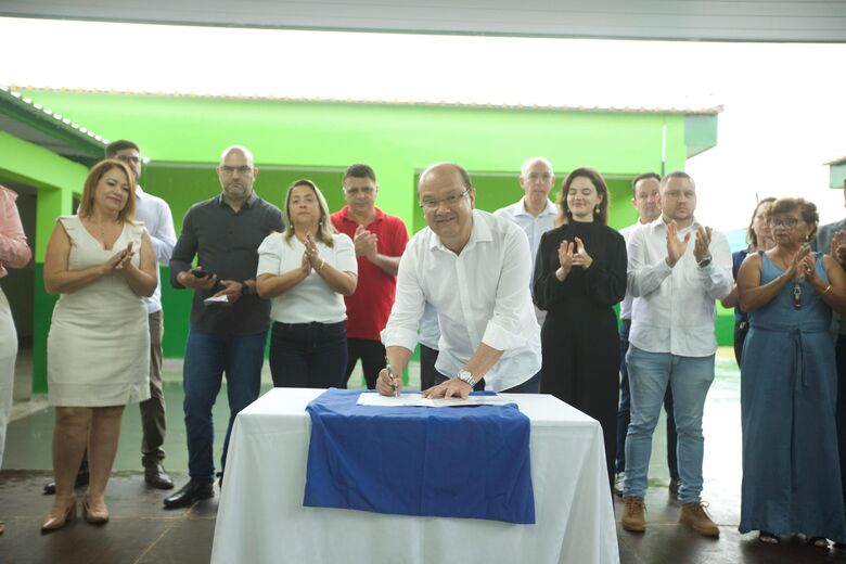 Governador em exercício, José Carlos Barbosa, participou da solenidade da assinatura das ordens de serviço para obras de saneamento básico, com investimentos de R$ 2,9 milhões, e pavimentação asfáltica e drenagem nos bairros Vila Nova, Jardim Mandeira e Jardim Antunes, no valor de R$ 10 milhões.