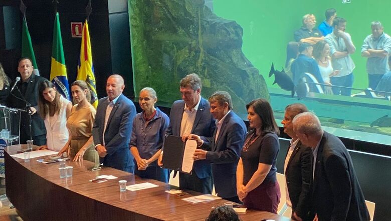 Na manhã desta segunda-feira (18), o governador Eduardo Riedel e os ministros de Desenvolvimento e Assistência Social, Família e Combate à Fome, Wellington Dias; do Planejamento e Orçamento, Simone Tebet; e a ministra de Meio Ambiente e Mudança do Clima, Marina Silva, assinaram a adesão de Mato Grosso do Sul a programas federais para a redução da pobreza.