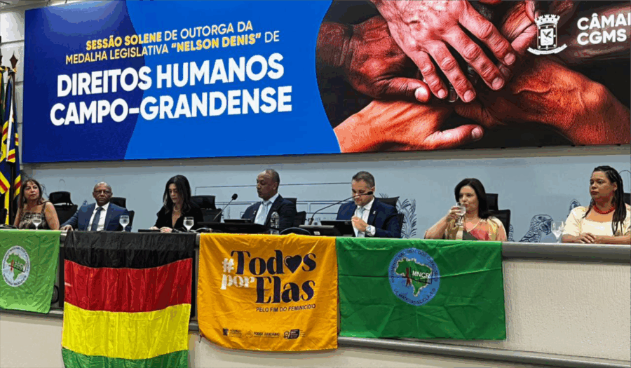 A Câmara Municipal de Campo Grande realizou, na noite desta quarta-feira, 26 de novembro de 2025, a Sessão Solene em Homenagem aos Direitos Humanos, proposta pelo Vereador Junior Coringa (MDB). O evento reuniu autoridades, lideranças sociais, defensores de direitos e personalidades que se destacam por suas ações em prol da dignidade, da inclusão e da justiça social.