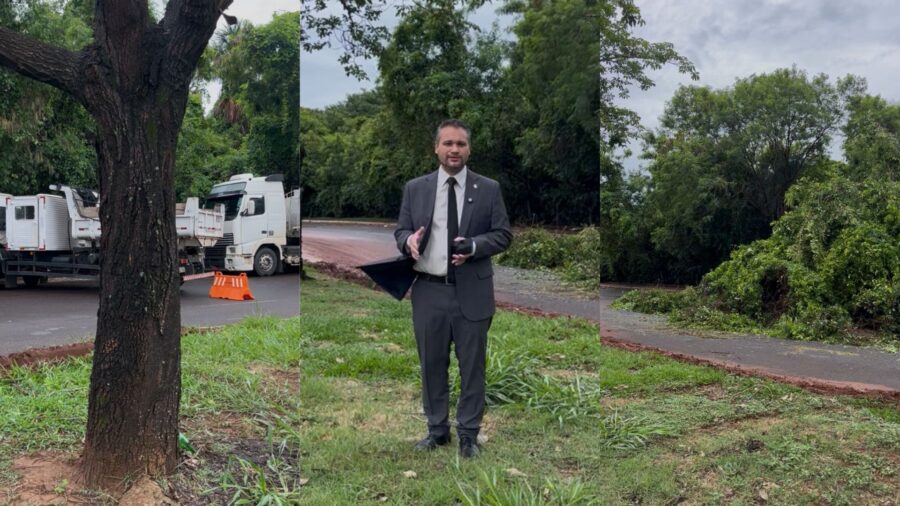 Na manhã desta quinta-feira (13), o vereador Leinha esteve na Avenida Senador Antônio Mendes Canale, no Bairro Pioneiros, para acompanhar de perto a situação após a queda de uma árvore, que acabou bloqueando uma das vias de acesso da rua em decorrência das chuvas intensas de ontem.