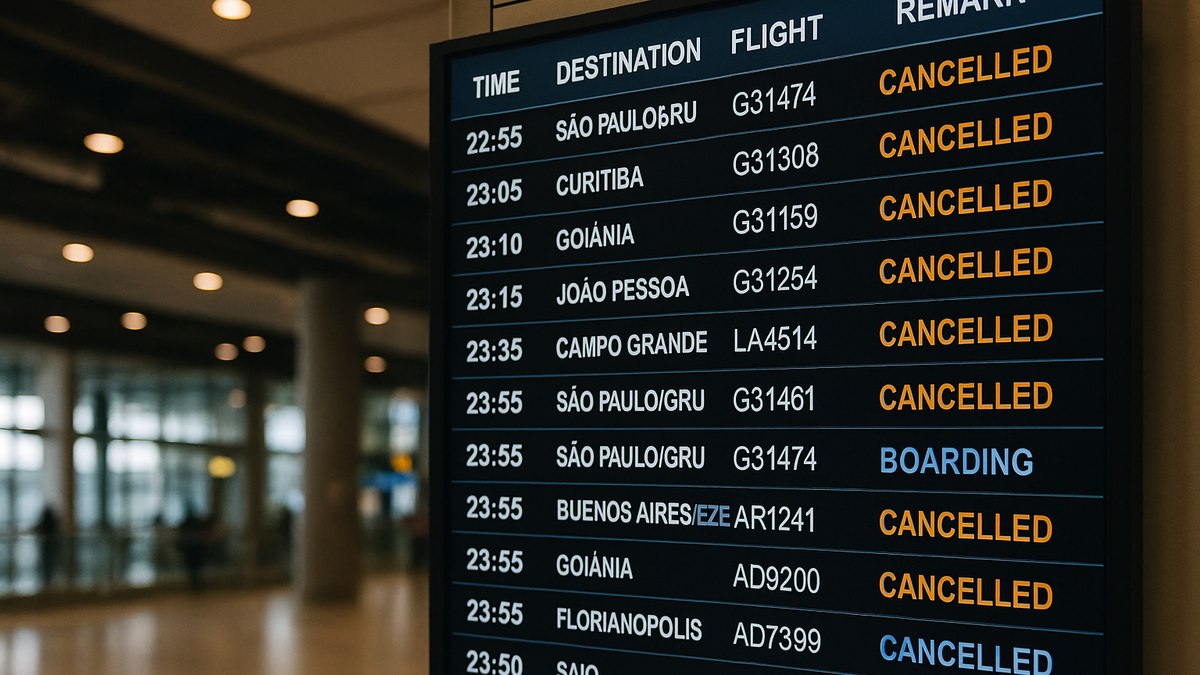Situação 1: se o seu voo for cancelado, você pode remarcar sem custo, optar por reembolso integral ou ser reacomodado em outro voo da mesma empresa (ou até de outra companhia, se houver acordo).