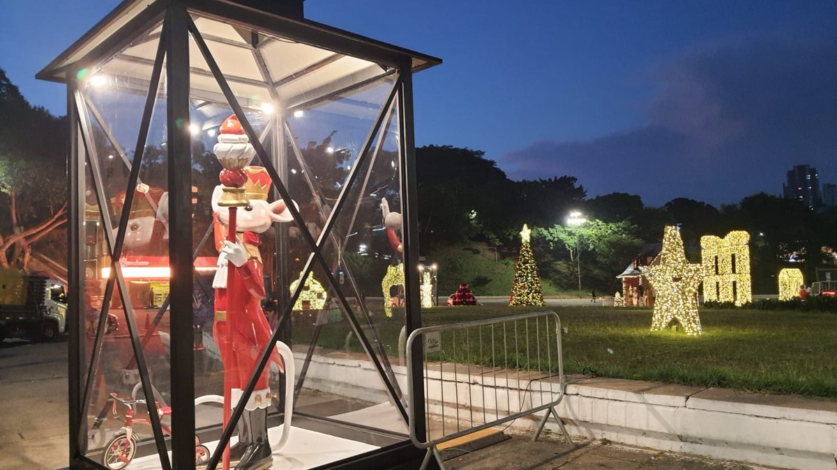 A Parada Natalina da praça Charles Miller possui ainda personagens, adereços luminosos e trilha sonora típica da temporada.