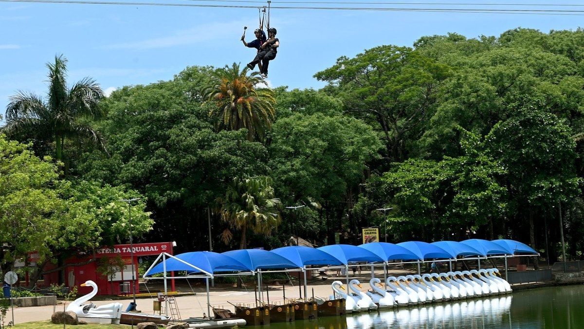 A tirolesa da Lagoa do Taquaral, no Parque Portugal, em Campinas (SP), vai funcionar todos os dias, das 10h às 18h, durante o período das férias escolares. A prefeitura anunciou, que a atração deve funcionar desta forma até o final do mês de fevereiro.